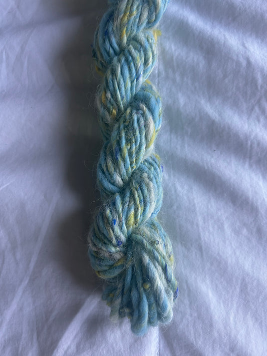 Hi everyone, I'm Chloe! I'm a fiber artist who has so much love for knitting, crocheting, spinning yarn, blending fibers, and I do a bit of dyeing. My journey in textiles began in 2022 with crochet, and since then this art has become something even bigger. I like to dig a lot of my inspiration from nature and the beauty I find around me. I aspire to create natural pieces that are one of a kind and durable for many years.